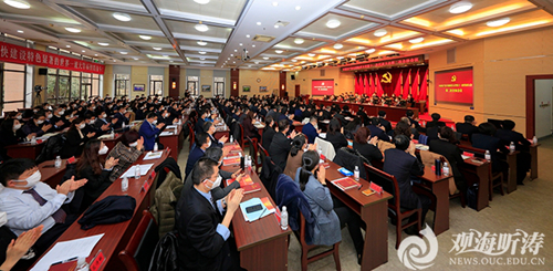 2月18日下午,中国共产党中国海洋大学第十一次代表大会圆满完成各项议程,在崂山校区胜利闭幕。田辉同志主持大会。