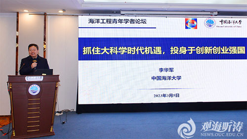 3月5日,由国家自然科学基金委员会主办、中国海洋大学承办的国家自然科学基金“2022年度海洋工程青年学者论坛”在青岛召开。会议旨在更好地发挥基金引领作用,推动海洋工程学科基础研究的发展,促进相关领域青年科研人员快速成长。中国工程院院士、中国海洋大学原副校长李华军,国家自然科学基金委工程与材料科学部常务副主任王岐东,海洋工程学科流动项目主任刘军鹏,中国海洋大学副校长刘勇出席开幕式。
