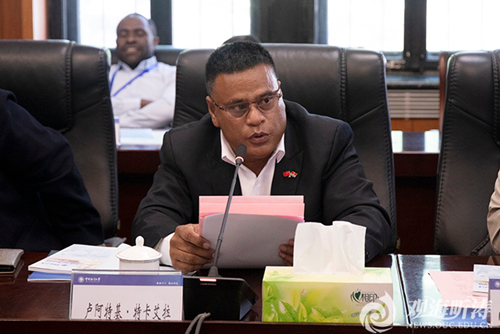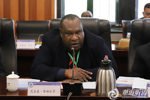 巴布亚新几内亚独立国农业与畜牧部代理常务秘书尼尔森・西姆比肯感谢学校的热情接待。他表示,太平洋岛国具有丰富的海洋资源,希望发展海参和海藻产业,发展蓝色经济,同时也面临着气候变化、海平面上升、海岸侵蚀、可再生能源利用等挑战。他希望在相关领域开展交流合作,并在未来能有更多的本国留学生到中国海大学习。