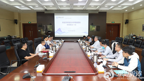 林间对中国海洋大学的热情接待表示感谢,并重点介绍了深圳海洋大学的筹建进展以及规划。他表示,两校都是中国的海洋大学,中国海洋大学是全国海洋科教领域的“领头羊”,此次调研主要是向中国海洋大学学习,希望未来能够在学科平台互补、学生培养互助、联合实验室共建、码头基地共享等方面开展务实合作,共同建好中国的海洋大学。