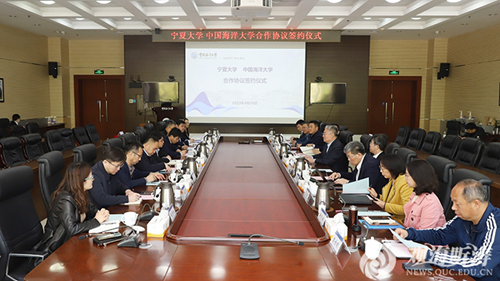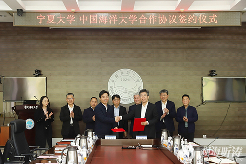 4月25日至26日,宁夏大学校长彭志科一行到中国海洋大学考察调研。双方围绕两校合作交流进行了深入的沟通,并签署了合作协议。宁夏大学校长彭志科、副校长李学斌、副校长王青云参加有关活动,中国海洋大学党委书记田辉会见彭志科一行,校长于志刚、副校长范其伟出席合作协议签约仪式,党委常委、党委办公室主任、校长办公室主任林旭升陪同会见。