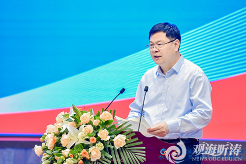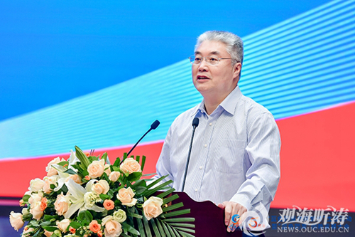 大会组织设置了开幕式、院士主旨报告、海洋药物高质量发展战略研讨会、“蓝色药库”开发青年论坛、学术论坛、产业论坛、闭幕式(中国“蓝色药库”开发计划青岛倡议)等活动。开幕式上,中国海洋大学校长于志刚致欢迎辞。他代表学校向莅临参会的领导、专家和企业家表示热烈欢迎和衷心感谢。他指出,学校始终将“蓝色药库”开发作为优先发展支持重点,通过支持海药院新型研发机构建设,着力打造海洋生物医药人才聚集高地,驱动海洋生物医药科技创新和产业高质量发展。他力邀广大海洋科技工作者和企业代表与学校携手并进,将“蓝色药库共同梦想”化作推动海洋经济发展的强大动力,为海洋强国建设和经济社会发展作出独具特色的贡献。