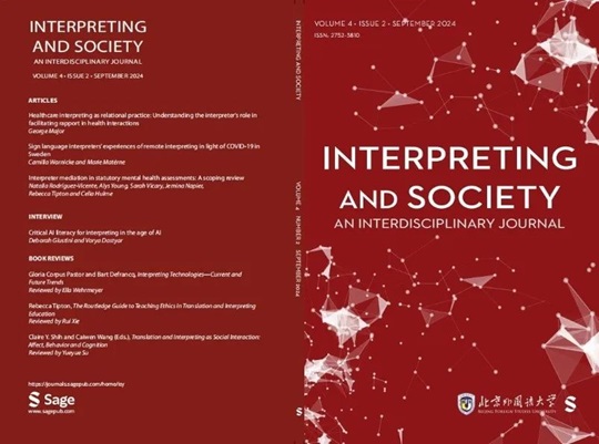 Interpreting and Society由北外和国际知名出版社Sage联合推出,是北外多语种期刊方阵中的一种,也是中国高校发起的第一本英文国际口译期刊。期刊主要刊载口译理论、实践及教学研究的前沿成果,突出跨学科口译研究,特别关注口译活动的社会属性。刊载文章类型包括原创性研究论文、书评及访谈。期刊严格执行双盲同行评审制度,采用开放获取(Open Access,OA)出版形式,以国际一流标准办刊,确保刊物的学术质量与国际影响力。期刊编辑部设于北外高级翻译学院,高级翻译学院院长任文和英国利兹大学教授王斌华担任联合主编,编委会由来自全球不同国家20所高校的口译学界知名学者或学术新星组成。