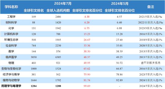 上海大学ESI全球前1%学科排名百分位
