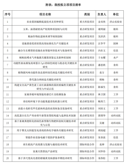 | 华中农业大学获批20项湖北省科技计划重大(重点)项目 |