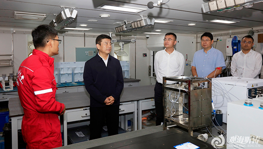 李明考察了船舶各功能区和科考、生活设施,认真了解“东方红”科考实习船队建设管理运行情况和科考航次情况,与船舶中心负责同志、船员和科考队员进行亲切交流,关心了解他们的工作生活情况,对大家的工作给予充分肯定。