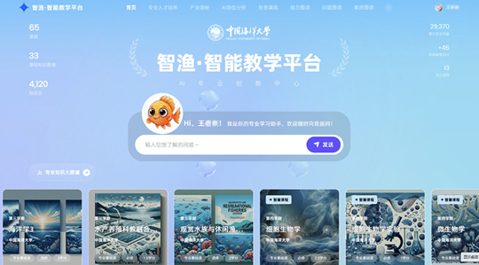 近日,教育部完成第三批“人工智能+高等教育”典型应用场景案例遴选,中国海洋大学“深蓝智教:基于‘智渔’平台的水产教育图谱自适应学习体系构建与实践”获批,并在国家高等教育智慧教育平台面向全国宣传推广。