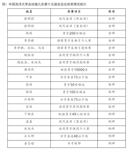 | 中国海洋大学运动健儿在第十五届全运会上获佳绩 |