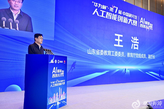 “AI赋能,智创未来”。10月30日,“华为杯”第七届中国研究生人工智能创新大赛(以下简称“大赛”)闭幕式暨颁奖仪式在青岛举行。中国学位与研究生教育学会副会长陈子辰,中国工程院院士、中国海洋大学教授包振民,山东省委教育工委委员,教育厅党组成员、副厅长王浩,山东国投公司党委常委、副总经理,山东人才集团党委委员、副总经理何伟,中国海洋大学党委常委、副校长刘勇,青岛市政府副秘书长陈万胜,青岛市工业和信息化局党组成员、副局长谢龙目,青岛市崂山区政府一级调研员付长伟,中国学位与研究生教育学会副秘书长赵瑜,华为技术有限公司济南研究所所长丁伟峰出席闭幕式并颁奖。