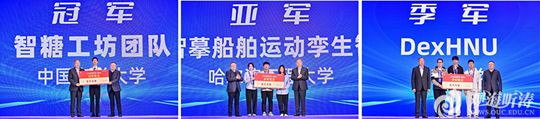 本届大赛于2025年5月27日正式开赛以来,吸引了3421支队伍报名参赛,提交有效作品2847件,报名队伍和作品提交数量均创历史新高。经初赛评审,共252支参赛队伍入围10月28日-30日在青岛举办的全国总决赛。大赛总决赛共评选出一等奖64项,二等奖186项。经过激烈角逐,中国海洋大学智糖工坊团队、哈尔滨工程大学虚舟智摹船舶运动孪生智导者团队和湖南大学DexHNU团队分别斩获冠军、亚军、季军。此外,73所研究生培养单位获优秀组织奖,96名教师获优秀指导教师奖。中国海洋大学57支队伍参加本届大赛,29支队伍获奖,其中3支队伍(含1支冠军队伍)获一等奖、6支队伍获二等奖、20支队伍获三等奖;6名教师获优秀指导教师奖;学校获优秀组织奖,为学校参与该赛事以来历史最好成绩。