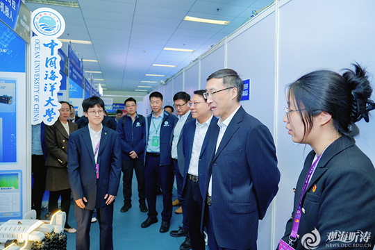 11月3日,第十九届“挑战杯”中国移动全国大学生课外学术科技作品竞赛在南京大学落下帷幕。中国海洋大学共获国家级奖项13项,包括特等奖4项、一等奖3项,三等奖6项,奖项数量和层次再创新高。校长张峻峰出席国赛终审决赛,观看项目成果展并与参赛师生座谈交流。