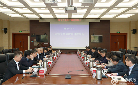 康复大学党委副书记、分管日常工作的副校长姜宏,副校长刘奇迹,中国海洋大学党委常委、副校长王厚杰,双方有关部门负责人参加座谈。