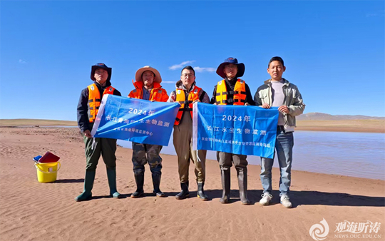 韩庆祥参加长江水生物监测(左三为韩庆祥)