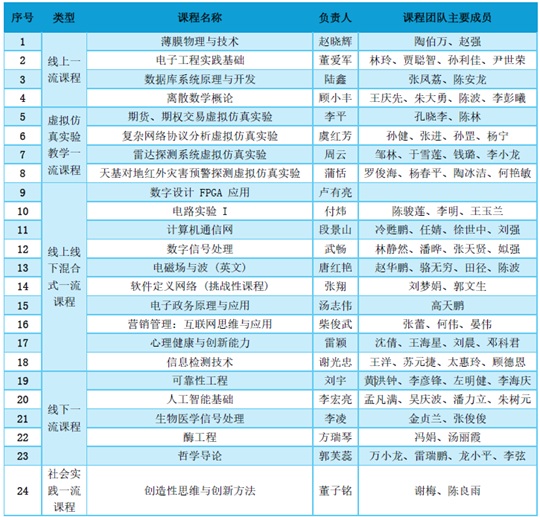 近日,教育部公布了第三批国家级一流本科课程的认定结果,电子科技大学4门本科课程入选,其中线上一流课程4门、虚拟仿真实验教学一流课程4门、线上线下混合式一流课程10门、线下一流课程5门、社会实践一流课程1门。至此,电子科技大学共有93门课程被认定为国家级一流本科课程。