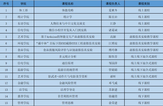 自教育部2019年发布本科“双万”建设计划以来,浙江工商大学积极响应“双万计划”建设要求,科学布局本科专业建设与一流课程培育工作。学校58个招生专业中,已有32个获批国家级一流本科专业建设点,12个获批省级一流本科专业建设点,一流专业建设成效显著。近日,教育部发布《关于公布第三批国家级一流本科课程认定结果的通知》,浙江工商大学再创佳绩,共有15门课程入选第三批国家级一流本科课程(其中线上一流课程4门,线上线下混合式一流课程4门,线下一流课程4门,虚拟仿真实验教学一流课程3门),入选课程数量列省属高校第二位。
