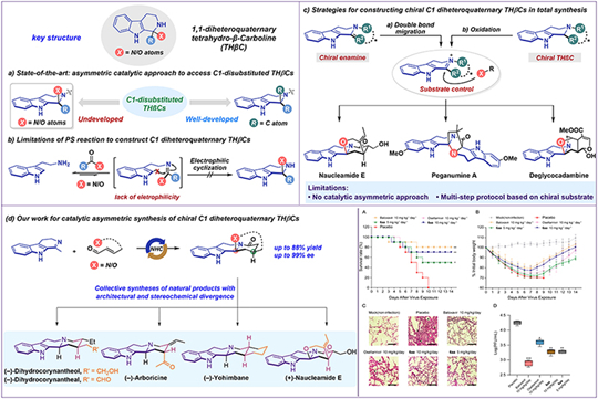 图1 手性双杂季碳四氢-β-咔啉的不对称催化构建及应用