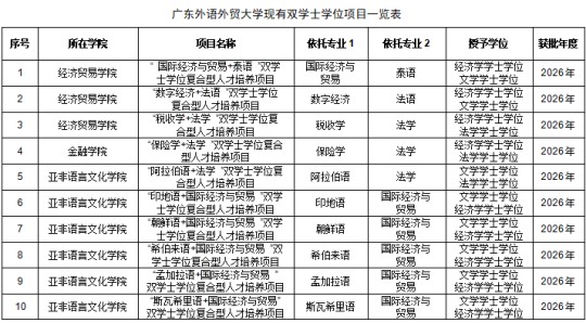 近日,广东省学位委员会公布新增学士学位授予专业批复结果,广东外语外贸大学申报的15个双学士学位复合型人才培养项目全部获批。截至目前,广东外语外贸大学已获批34项双学士学位复合型人才培养项目。