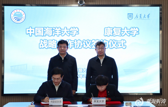 2月9日,中国海洋大学与康复大学战略合作协议签约仪式在康复大学举行。康复大学校长、中国工程院院士董尔丹主持仪式,党委书记刘军,分管日常工作的副校长姜宏,副校长毕建国、刘奇迹出席仪式。学校党委书记李明、党委常务副书记张静、副校长王雪鹏出席仪式。