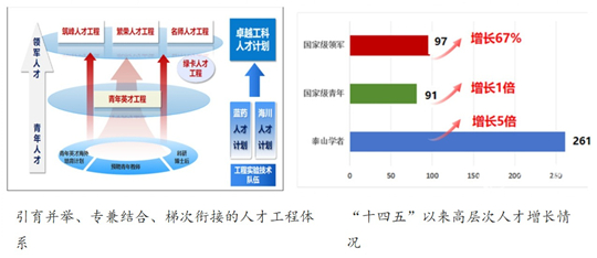 “十四五”时期,学校以高瞻远瞩的战略谋划、精准有力的务实举措,推动人才工作在体制机制、师德师风、引育体系、评价改革等方面实现突破,构建起“引育留用”全链条人才生态体系,师资队伍建设成效显著。