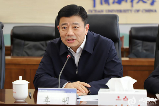 3月13日,中国海洋大学与青岛科技大学战略合作协议签约仪式在中国海洋大学崂山校区举行,青岛科技大学党委书记杨天梅,党委常委、副校长吴明铂出席仪式,中国海洋大学党委书记李明出席仪式并讲话,党委常委、副校长刘勇主持仪式。