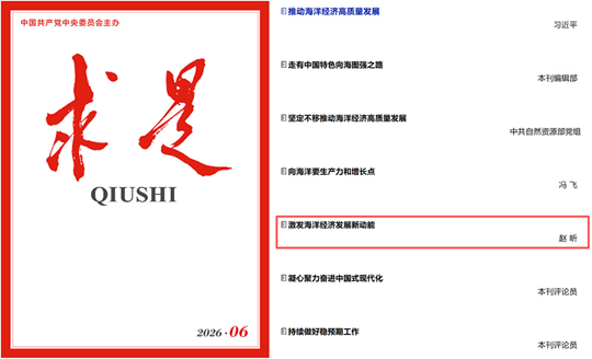 3月16日,中国海洋大学经济学院院长赵昕教授在《求是》2026年第6期发表题为《激发海洋经济发展新动能》的理论文章。