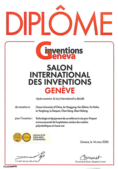 3月11日至15日,第51届日内瓦国际发明展在瑞士日内瓦举行,中国海洋大学贾永刚教授领衔完成的项目“深海多金属结核开采环境影响原位监测技术与装备”荣获日内瓦国际发明展金奖,展现了我国在深海矿产开采环境影响监测技术方面的创新实力。