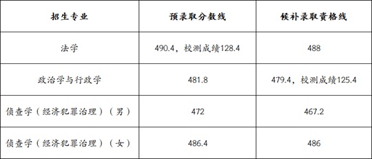 | 华东政法大学2026年春季招生各专业(方向)预录取、候补录取资格线 |