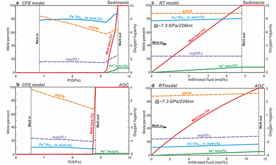 以往相关研究多依赖零维或一维热力学模型,这类方法难以有效刻画俯冲板片在二维空间尺度上连续变化的温压结构,也无法在开放体系下,定量反映不同岩性之间复杂的流体—熔体迁移、相互作用及其对氧化还原状态的综合影响。换言之,目前仍缺乏能够在二维空间框架下,对俯冲板片—地幔系统中氧化还原过程进行定量约束的数值模拟手段。