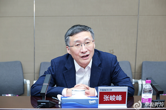 张峻峰代表学校对南京大学长期以来给予的支持表示感谢,并介绍了学校在涉海学科建设、海洋人才培养、服务海洋强国建设等方面的工作成效。他指出,南京大学历史悠久、声誉卓著,始终处于中国高等教育的第一方阵,特别是近年来,在建设中国特色世界一流大学的征程中迈出稳健步伐、取得丰硕成果。海大与南大在校园文化方面有着诚朴、扎实的共同点,有着深厚的合作渊源与广阔合作空间,期待两校在学科建设、基础研究、人才队伍建设、学生培养等领域拓展深度合作,共同服务国家战略需求,为强国建设、民族复兴伟业作出更大贡献。