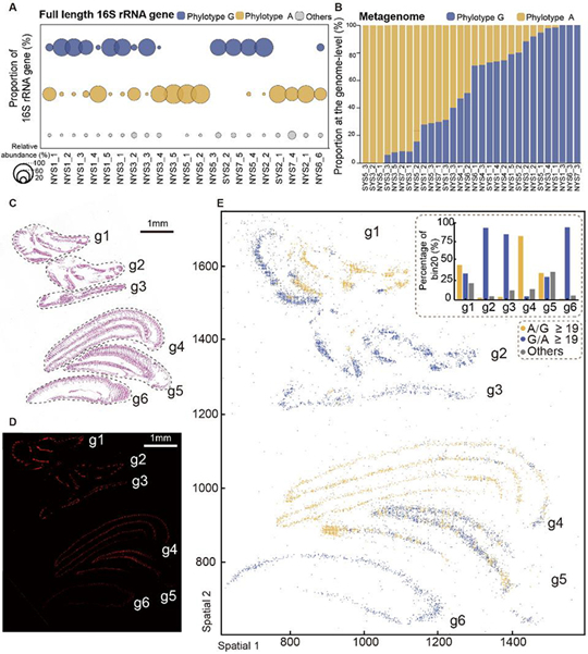 图2 鳃组织中共生细菌的两种共生系统型的多样性与空间分布