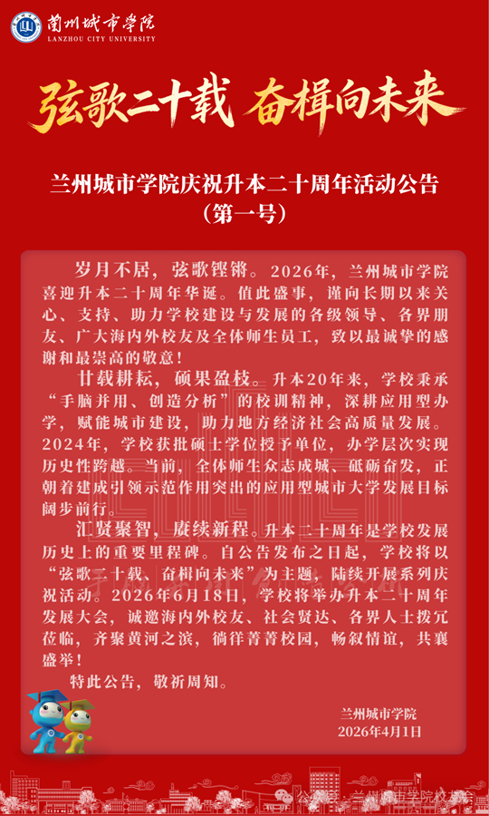 兰州城市学院庆祝升本二十周年活动公告(第一号)