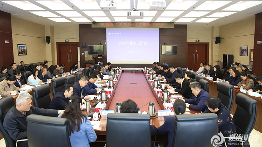 4月13日,中国海洋大学召开2026年就业工作会。学校党委书记李明讲话,党委常务副书记张静,副校长王厚杰、林旭升,党委副书记、纪委书记俞黎阳出席会议,副校长王雪鹏主持会议。