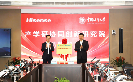 贾少谦、李明共同为“中国海大—海信产学研协同创新研究院”揭牌。