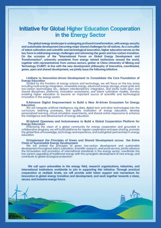 倡议呼吁全球能源类高校、科研组织、产业界和国际机构共同响应,通过多层次务实合作,为全球能源转型发展提供坚实的人才支撑与创新动力,携手迈向清洁、安全、普惠的能源发展未来。