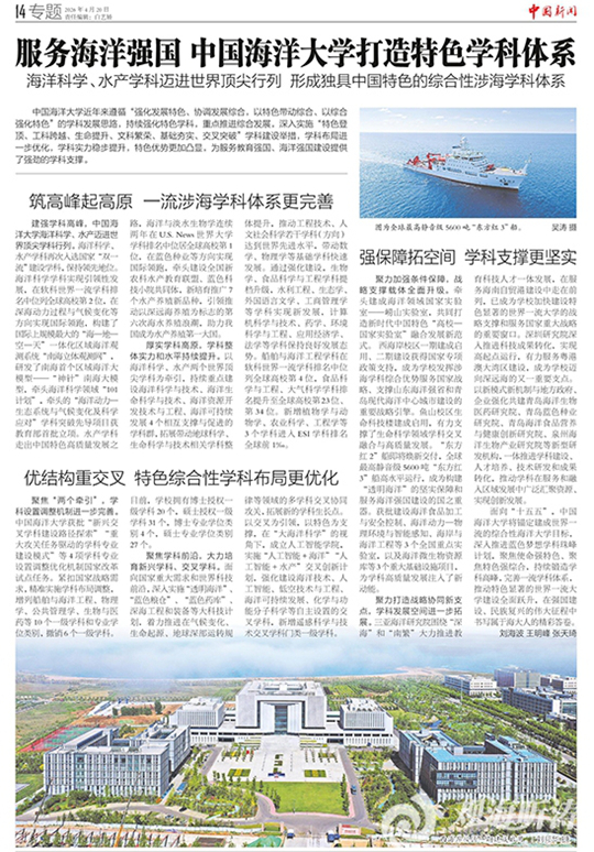 | 【中国新闻】服务海洋强国 中国海洋大学打造特色学科体系 |