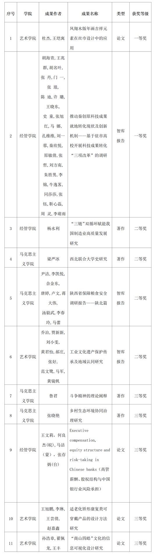 近日,陕西省人民政府发布了《关于表彰第十七次哲学社会科学优秀成果的通报》(陕政字【2026】20号),西安理工大学获奖11项,其中一等奖2项,二等奖4项,三等奖5项。
