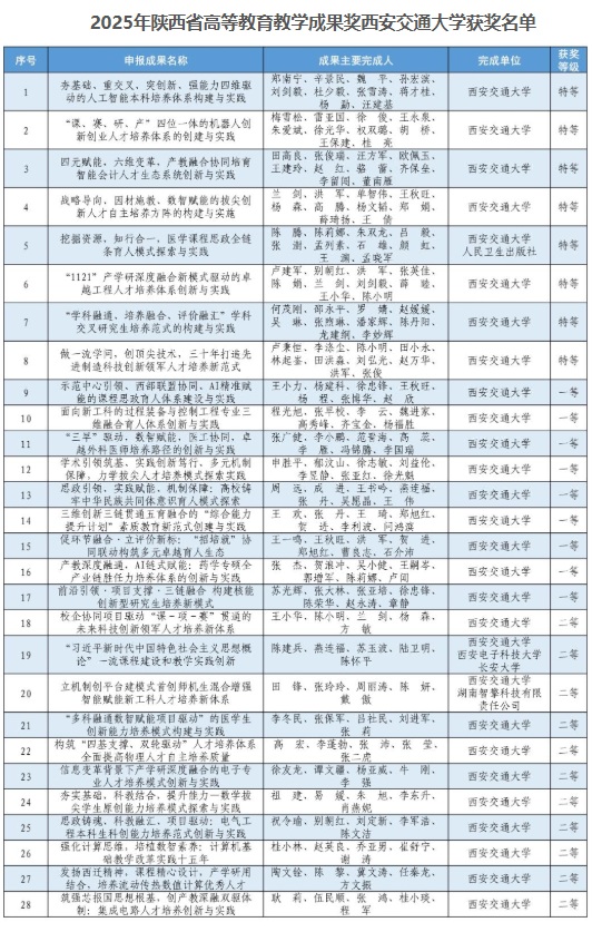 | 全省第一︱西安交通大学28项成果获2025年陕西省高等教育教学成果奖 |