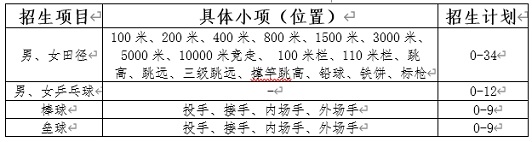 报考我校田径、乒乓球项目的考生专业测试参加我校组织的校考。