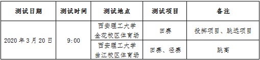 6.田径项目考生需参加学校组织的网上报名、现场报到及专项测试。游泳项目考生需参加学校组织的网上报名和国家体育总局组织的2020年高水平运动队招生统测项目的注册、报名和测试。