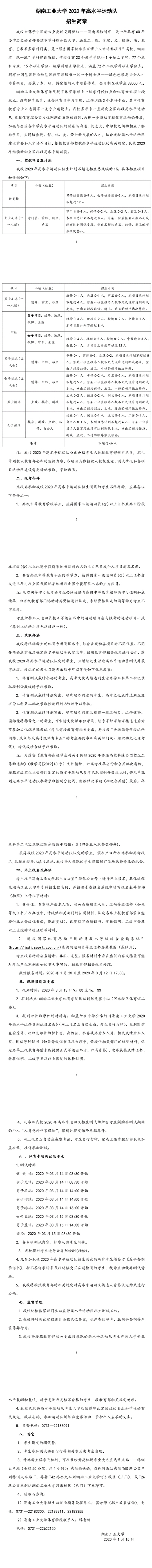 湖南工业大学2020年高水平运动队招生简章