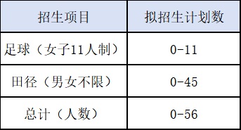 1.拟招生人数:女子足球≦11人;田径≦45人。