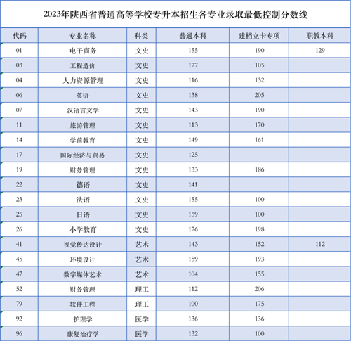 02、2023年专升本各专业录取最低控制分数线
