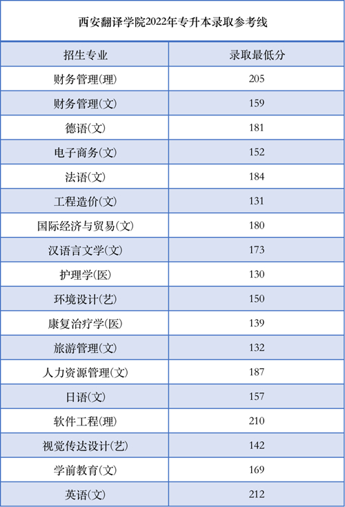 03、西安翻译学院2022年专升本录取参考线
