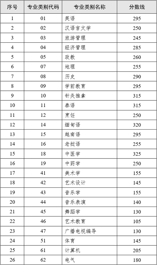 | 云南省2023年普通高等学校本科招收应届专科毕业生升学统一考试各专业类别和艺术体育专业最低录取控制分数线 |