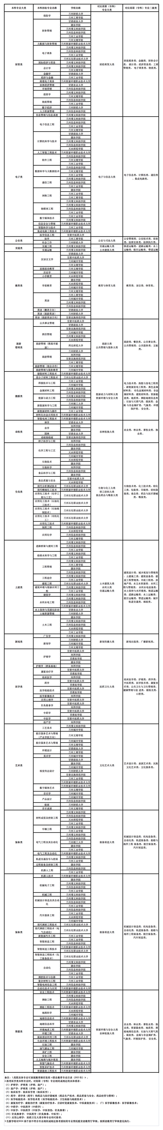 2.2024年甘肃省普通专升本高职(专科)和本科专业大类对照表以及招生学校及专业目录