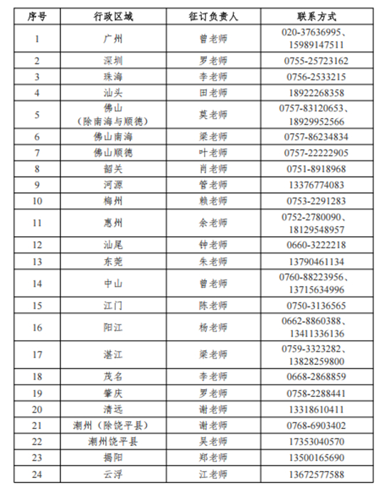 (一)单位、团体可联系对应行政区域征订负责人报订,联系方式如下: