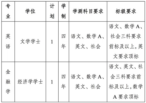 第七条 参加2023年台湾地区大学入学考试学科能力测试(以下简称“学测”),各招生专业学测科目和相应标级要求见第三章招生计划。