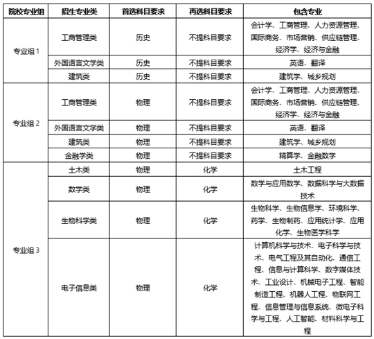 西交利物浦大学按照专业大类进行招生。考生在填报高考志愿时只要选择大类,而非大类内的专业。各省、自治区、直辖市招生主管部门编印的《2025年普通高等学校招生专业和计划》中的西交利物浦大学招生专业类名称,仅用于学生高考志愿填报。具体专业列表请参考官网。