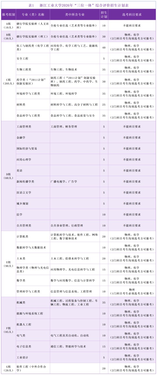 | 浙江工业大学2026年“三位一体”综合评价招生章程 |