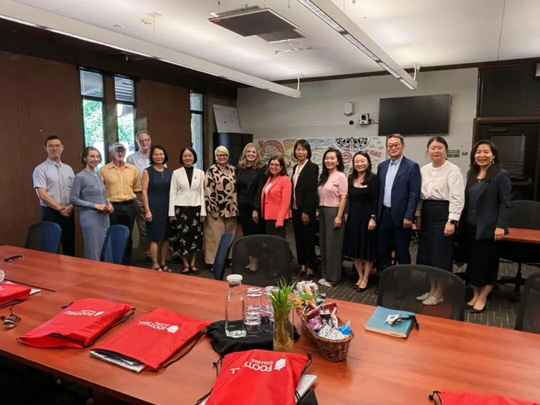 之后,代表团赴美国洛杉矶,拜访学校合作方加州大学洛杉矶分校。在前期两校合作协议(MOU)签署进度计划下,代表团重点针对当前存在的难点问题展开专题研讨,并同该校项目负责人Jennifer Dixon就暑期游学项目的课程设计、行程安排、安全保障等具体实施方案深入交流。蔡永莲提出,双方要进一步衔接两校合作协议签署流程与游学项目筹备工作,确保合作事项有序推进,为师生提供高质量国际交流体验。
